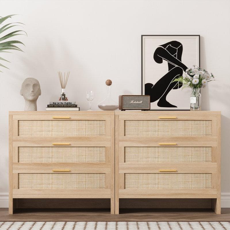 • Doğal meşe dokusu ve yumuşak kavisli kenarları ile tasarlanan bu şifonyer, kulpsuz ön yüzeyi sayesinde yatak odalarında veya oturma alanlarında sade ve akıcı bir atmosfer oluşturur.