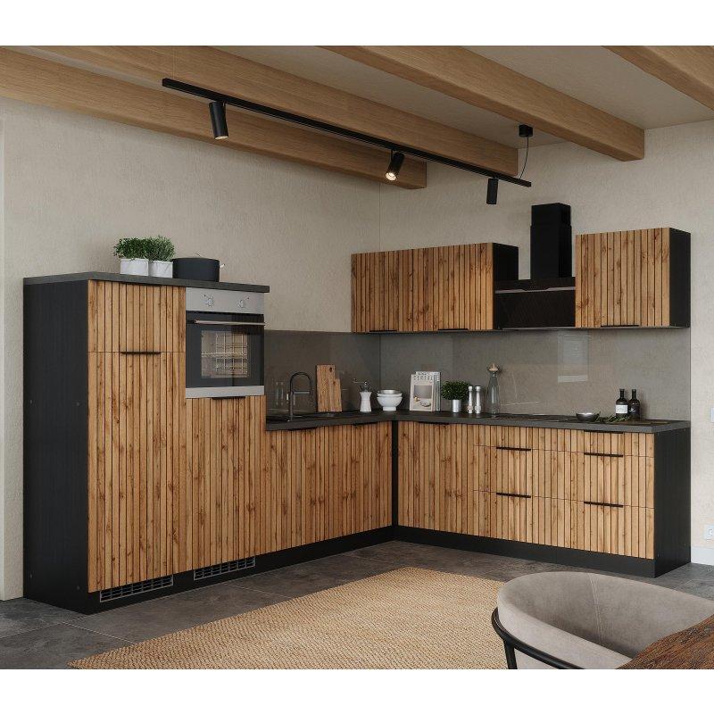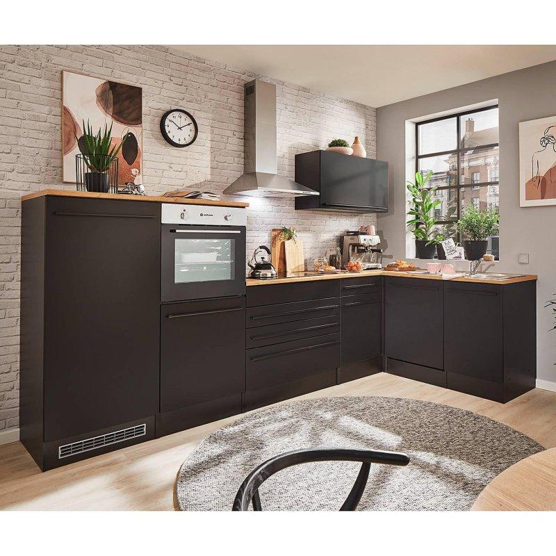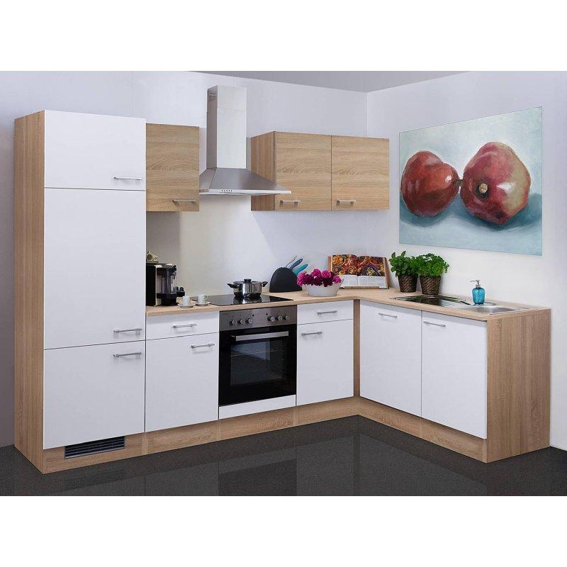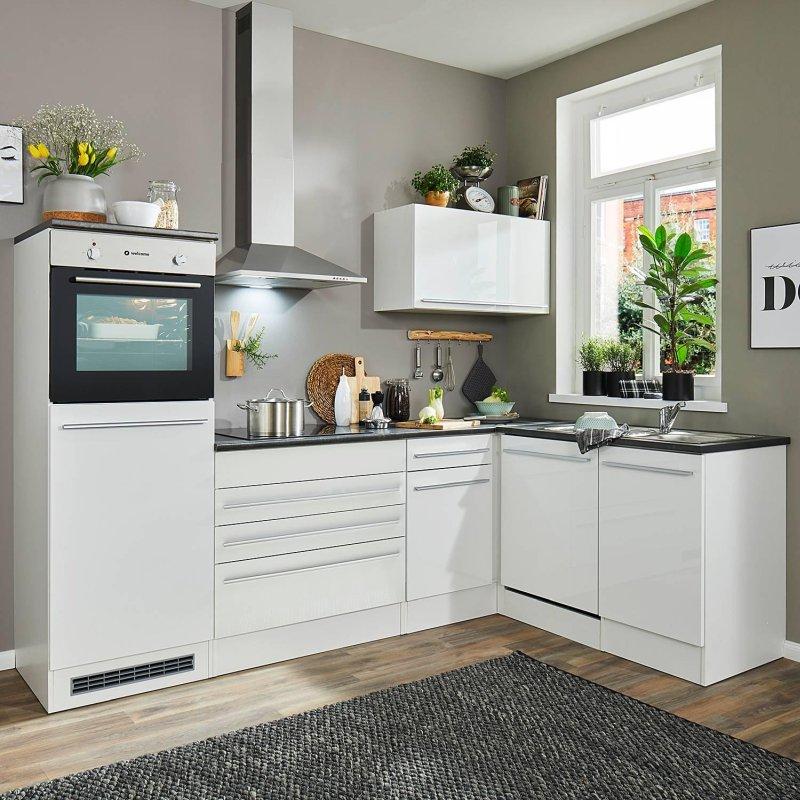 • Bu komple set, 280 x 170 cm ölçülerindeki L tipi köşe mutfak kurulumu için gereken tüm modülleri ve elektrikli aletleri içerir.