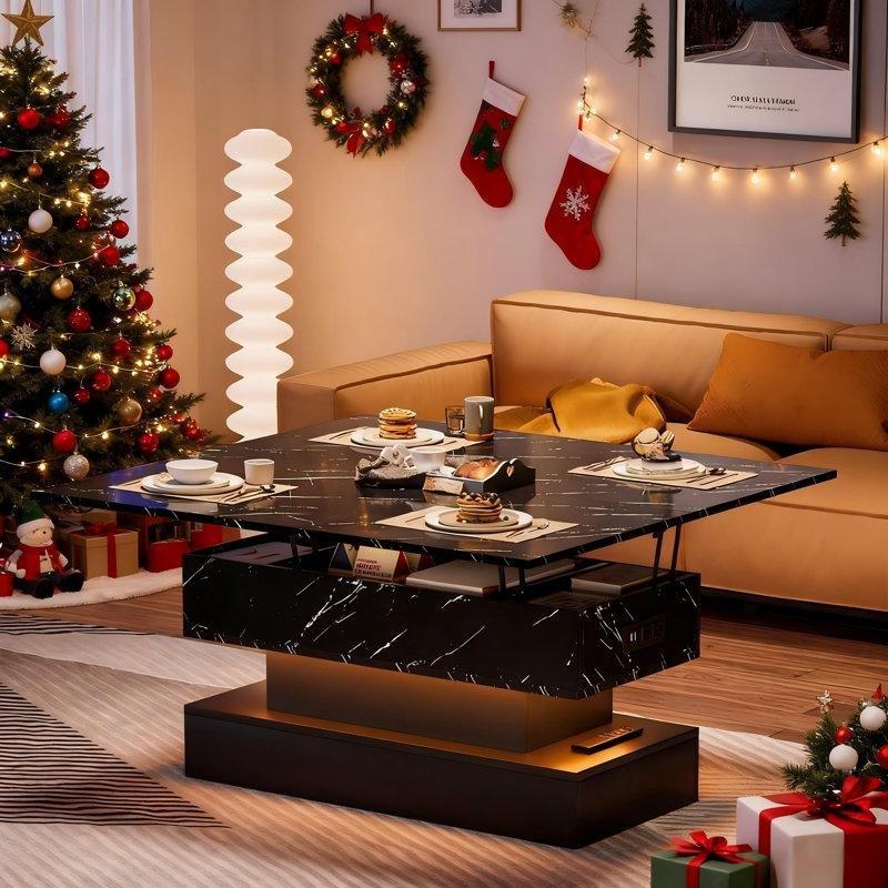 Bu akıllı sehpa, kaldırmalı üst mekanizması sayesinde hem oturma odası sehpası hem de çalışma masası olarak kullanılabilir. Yumuşak ve stabil kaldırma sistemi, kapağı zahmetsizce yükseltip alçaltmanızı sağlar. Ev ofisinde dizüstü bilgisayarda çalışırken, yatakta televizyon izlerken yemek yerken veya kanepeye uzanırken ödev yaparken rahat bir yüksekliğe ulaşmak artık mümkün.