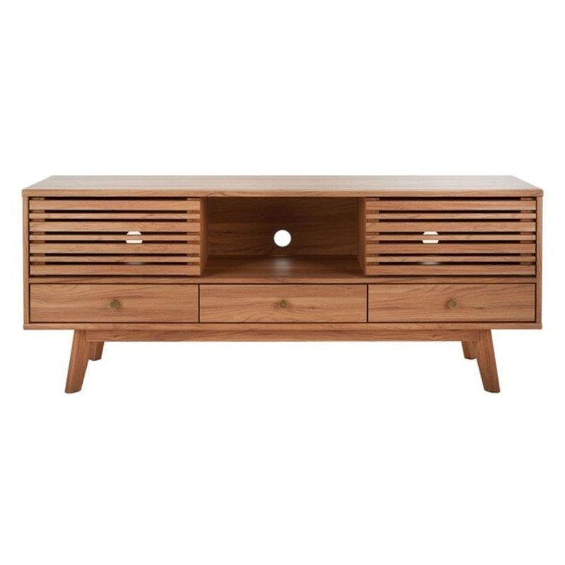 Bu çekmeceli tv ünitesi modern ve şık bir tasarım sunmaktadır. Ürün, doğal ahşabın derin tonlarını sergileyerek mekanınıza sıcak bir hava katmaktadır. Yüzey, çizgili desenli lameller ile işlenmiştir. Bu desen sayesinde ürün hafif ve havadar bir görünüme sahiptir. Mat ahşap dokusunun pürüzsüz işçiliği, ürünü her mekanla uyumlu hale getirmektedir.