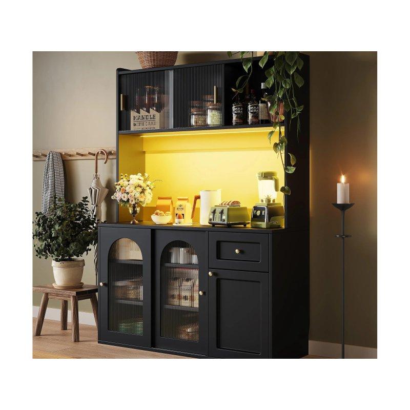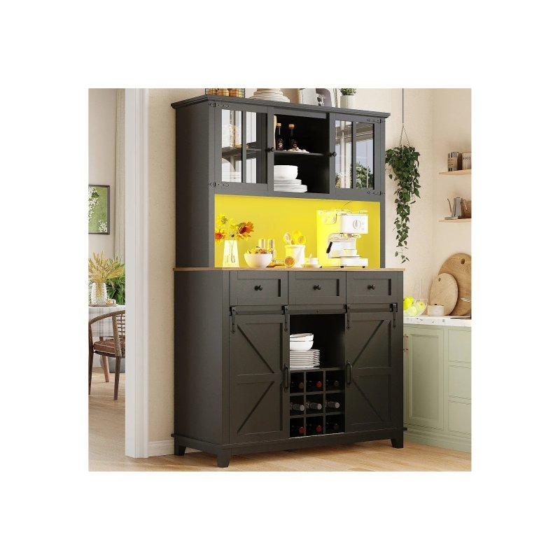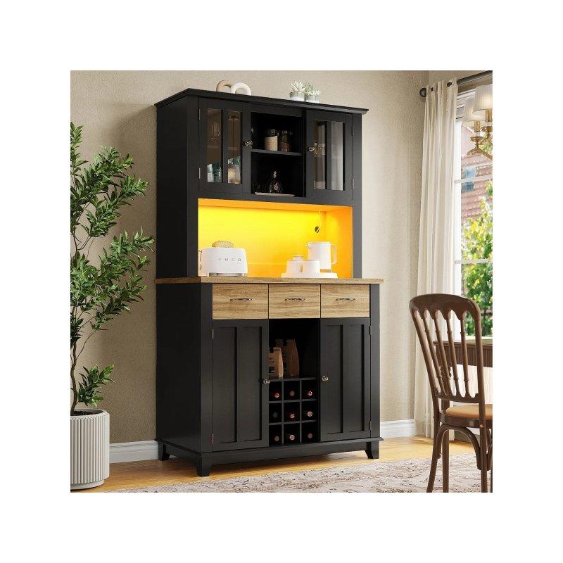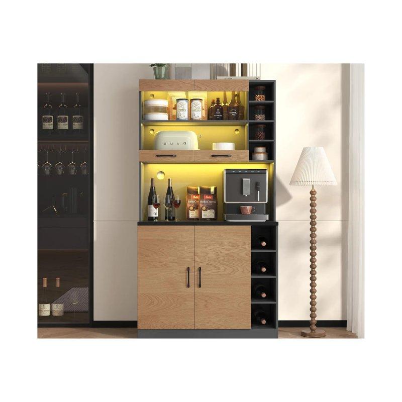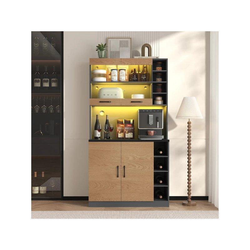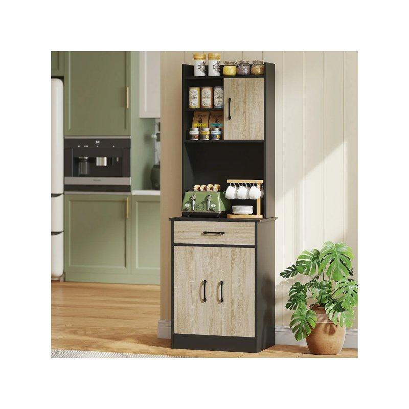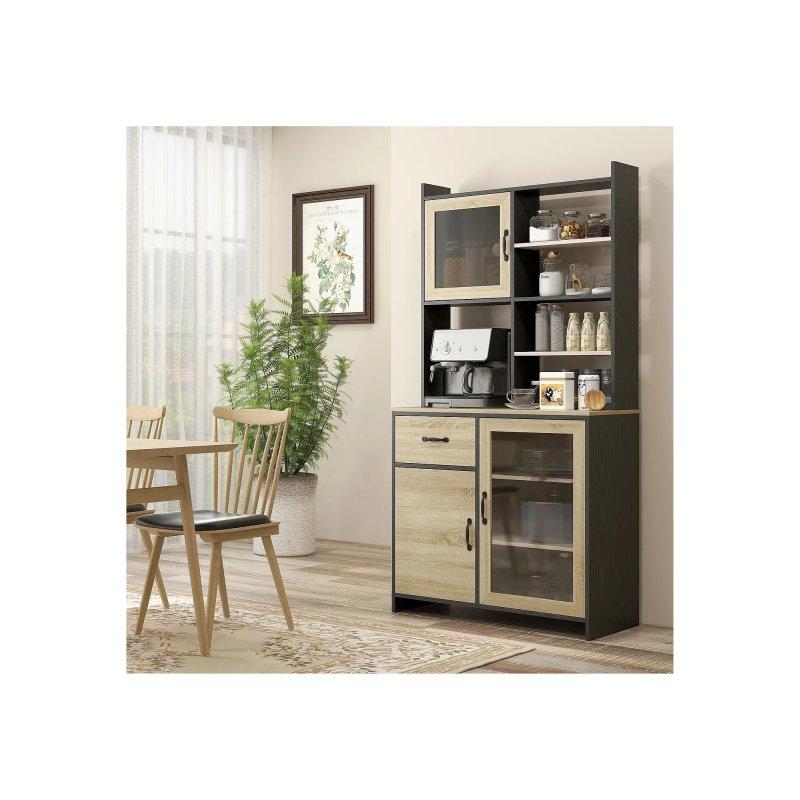 Bu ürün sadece mutfak için değil, oturma odası veya yemek odasında da kullanılabilir. Şarap depolama, kahve organizasyonu veya genel amaçlı büfe dolabı olarak hizmet verebilir. Tasarımı klasik ve rustik tarzı bir arada sunar, ev ortamına sıcak ve doğal bir hava katır.
