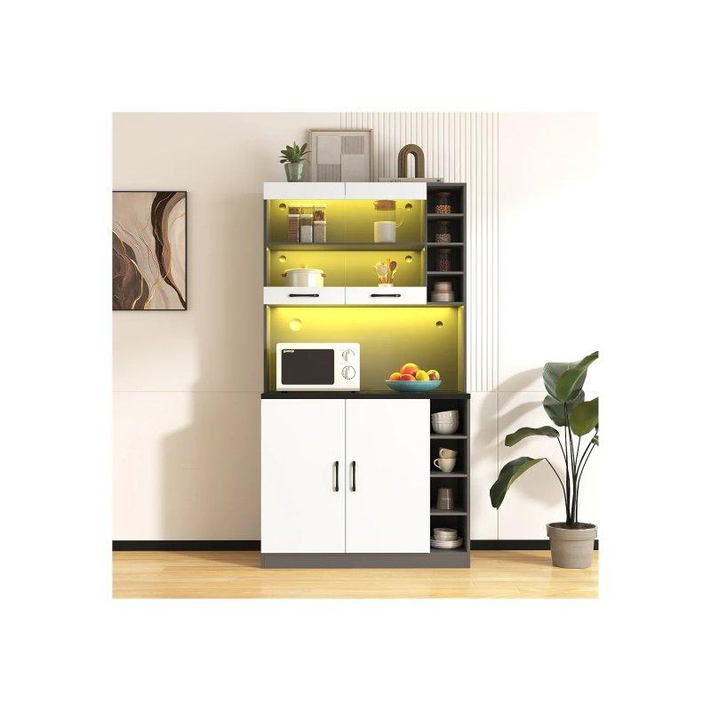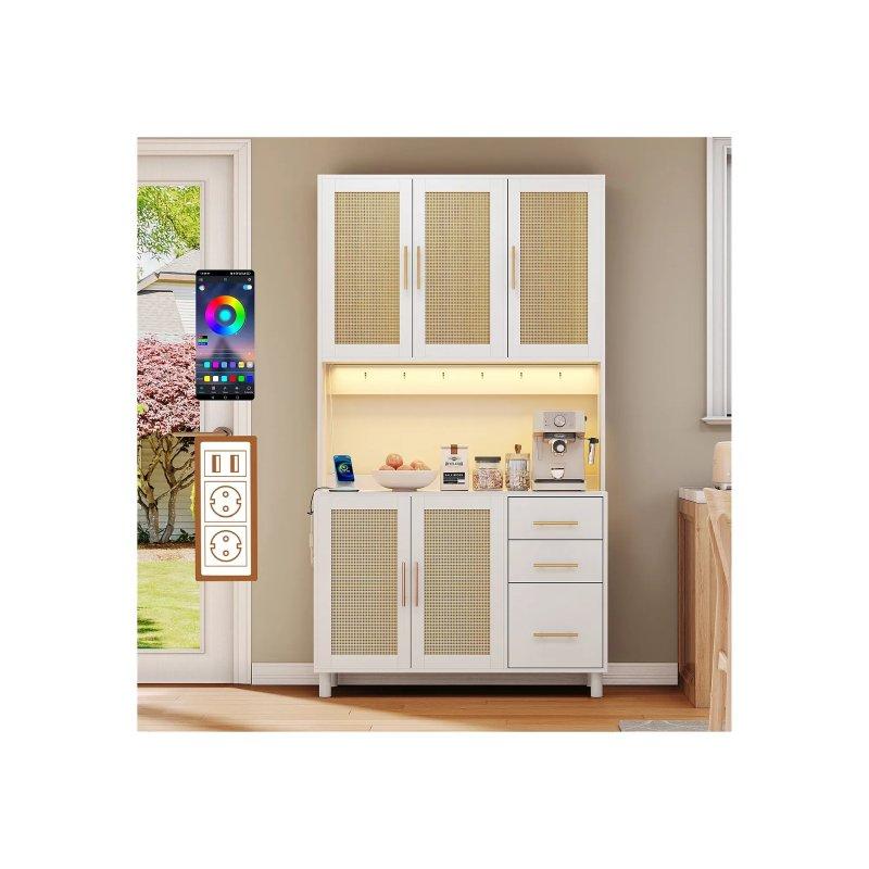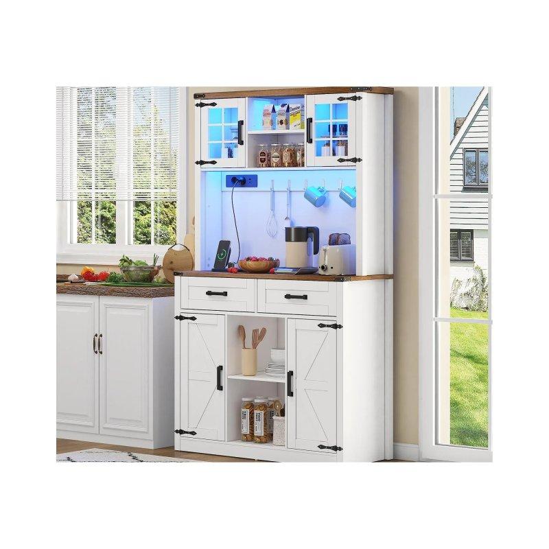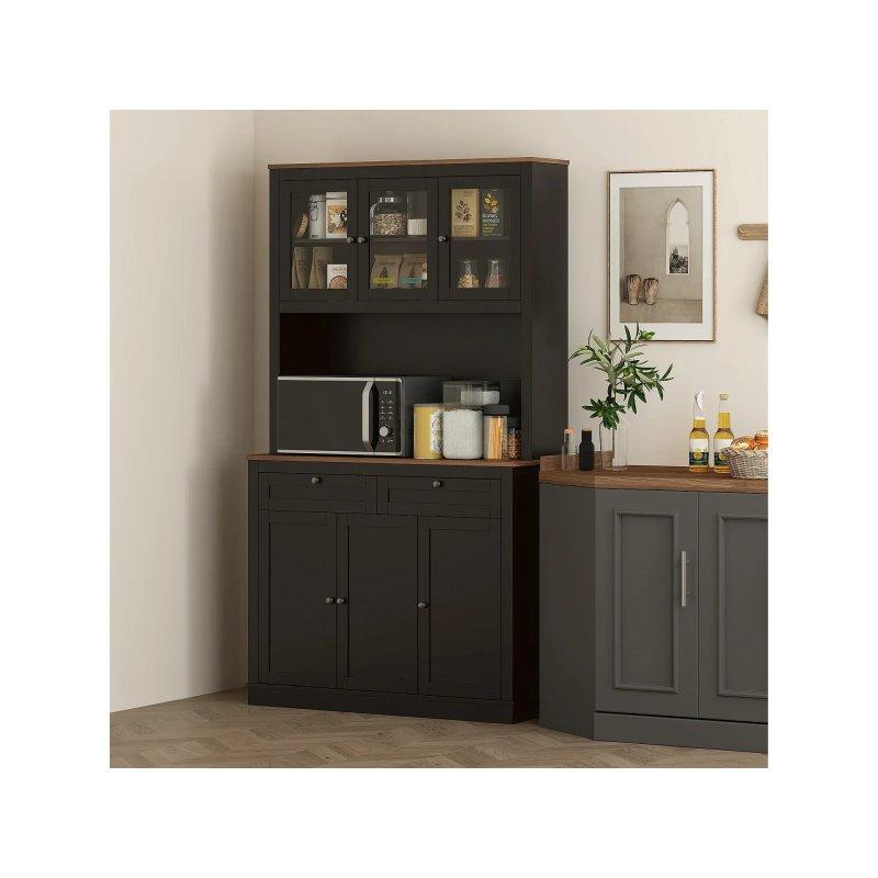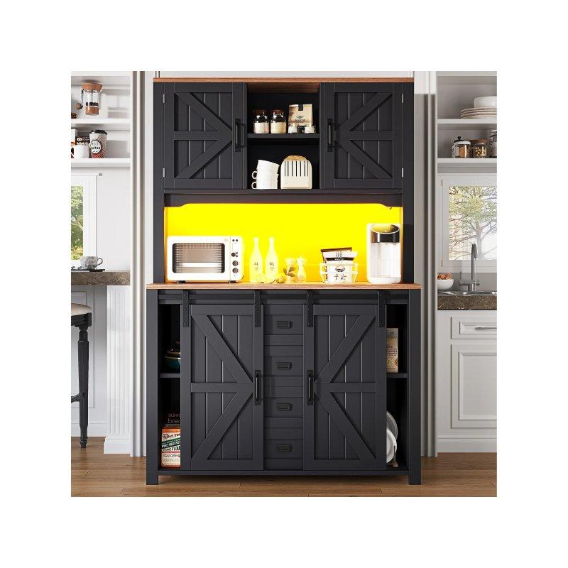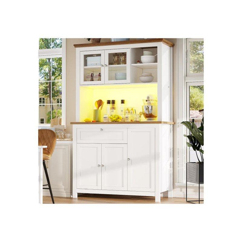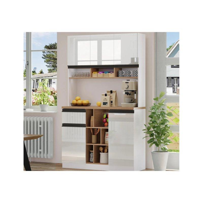 Bu ürün sadece mutfak için değil, oturma odası veya yemek odasında da kullanılabilir. Şarap depolama, kahve organizasyonu veya genel amaçlı büfe dolabı olarak hizmet verebilir. Tasarımı klasik ve rustik tarzı bir arada sunar, ev ortamına sıcak ve doğal bir hava katır.