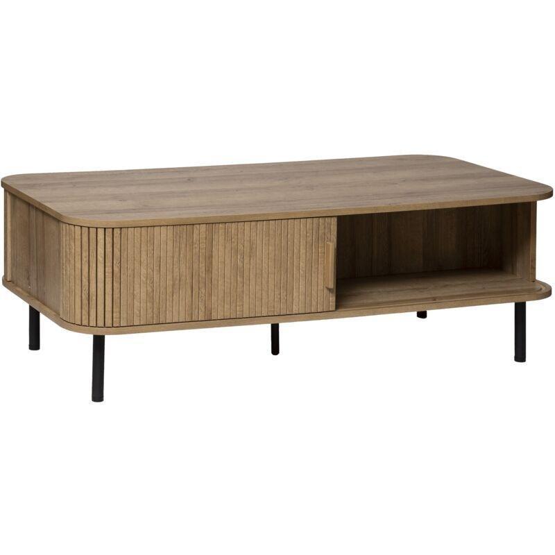 Sehpa, dikdörtgen bir üst yüzeye sahiptir ve altında geniş bir depolama alanı bulunmaktadır. Ön kısımda kaydırmalı kapı mekanizması ile açılan bir bölme ve iki ayrı açık raf nişi yer almaktadır. Bu yapısı sayesinde kitaplar, dekoratif eşyalar, uzaktan kumandalar ve diğer ev eşyalarını pratik bir şekilde depolayabilirsiniz. Kapalı kapılı bölme, sakladığınız eşyaları toza karşı korur.