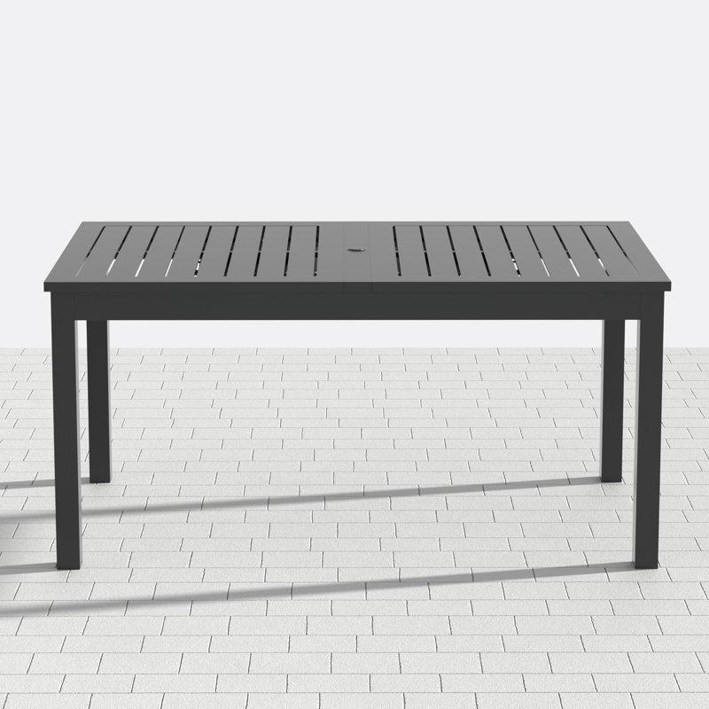 Bu bahçe yemek masası siyah alüminyumdan yapılmıştır ve modern tasarıma sahiptir. Masanın yüzeyi pürüzsüz ve mat siyah renge sahip olup, UV ışınlarına, paslanmaya ve küfe karşı dirençlidir. Böylece bahçe ortamında uzun süre dayanabilir.