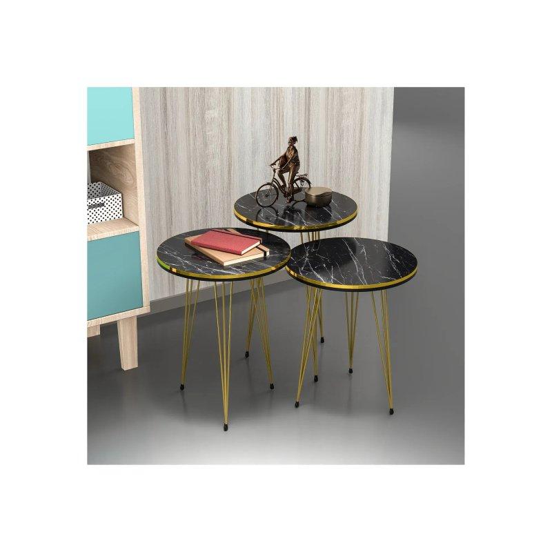 Gold Alüminyum Zigon Sehpa 48×42 cm 3’lü Set – 107335