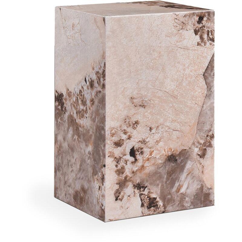 • Saten yüzeyli pirinç çerçeve taban ve mermer tabla ile ince profilli yan sehpa.