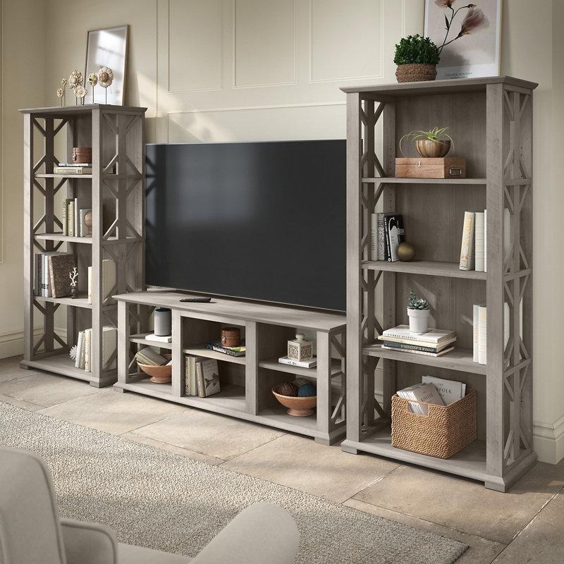 Gri Endüstriyel Ahşap Kitaplıklı 70 İnç TV Ünitesi Seti 152x39x55 cm