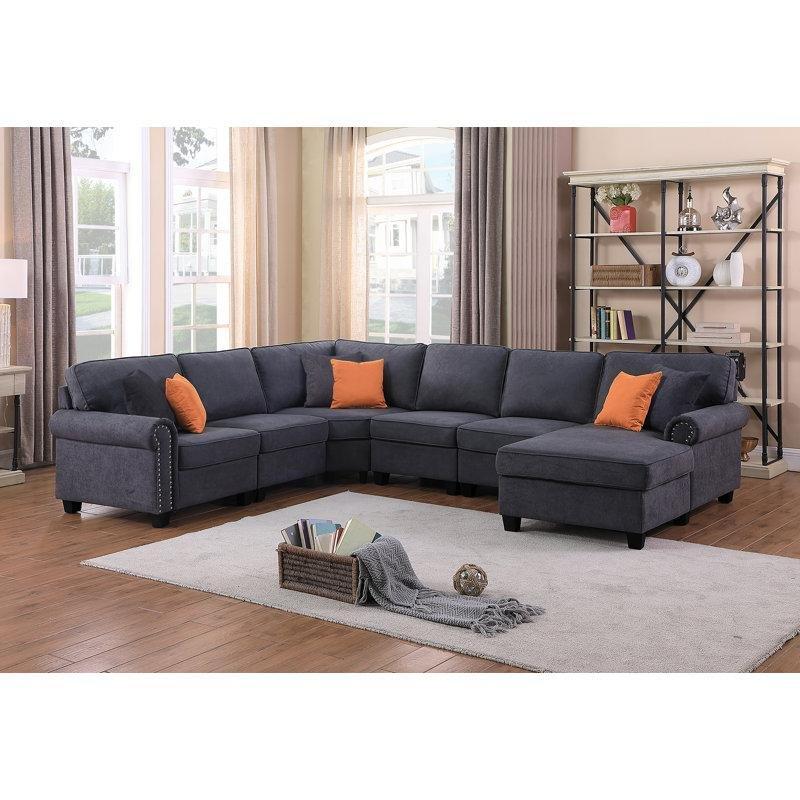 • 6 kişilik oturma kapasitesi sunan bu geniş koltuk, 285 cm genişliğe, 229 cm derinliğe ve 87 cm yüksekliğe sahiptir. Kare tasarımlı kolçakları modern bir duruş sergiler.