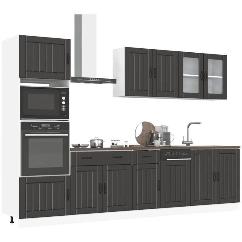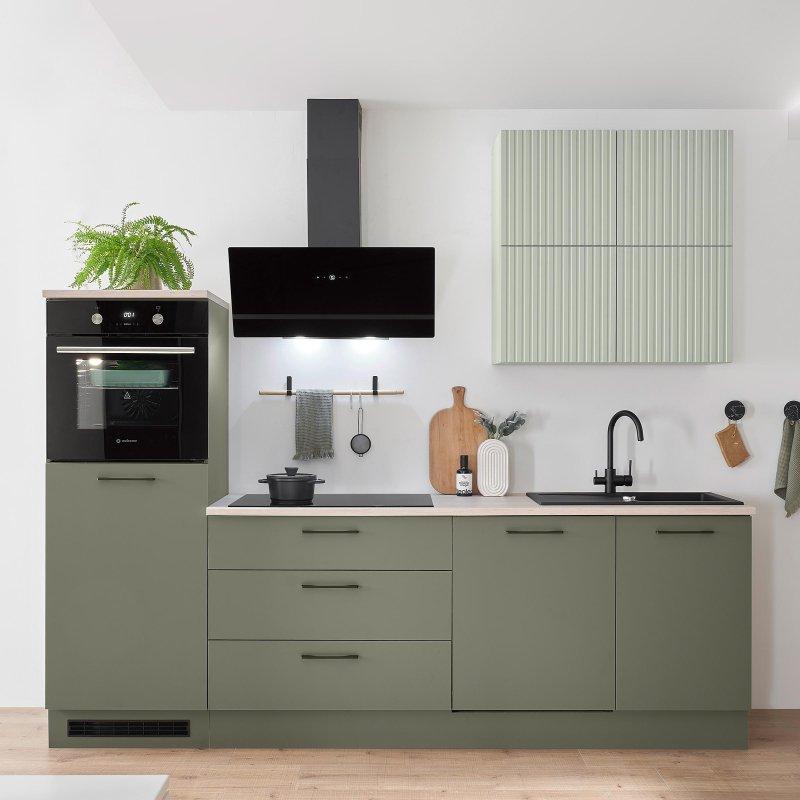 • Set içerisinde 40 cm’lik tek kapaklı ve iki çekmeceli alt dolap, 80 cm’lik iki kapaklı eviye altı dolabı, 80 cm’lik iki kapaklı ve tek raflı alt dolap ile 60 cm’lik ankastre fırın dolabı yer alır.