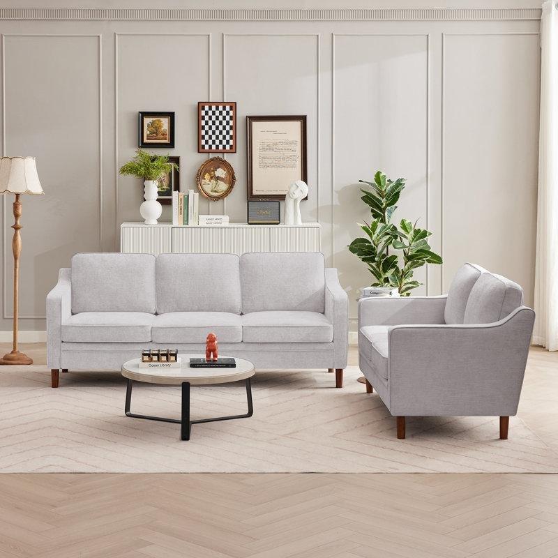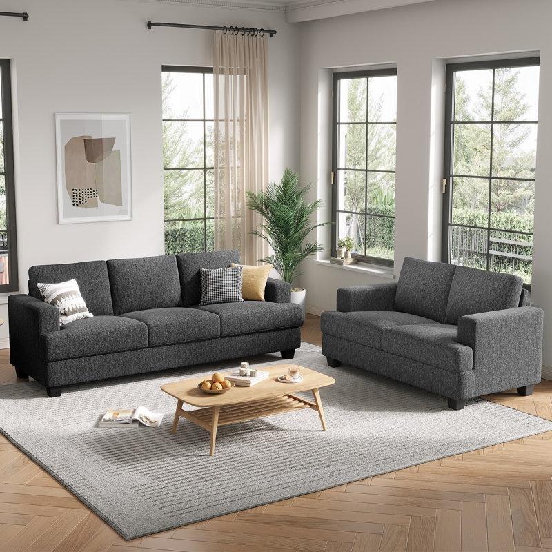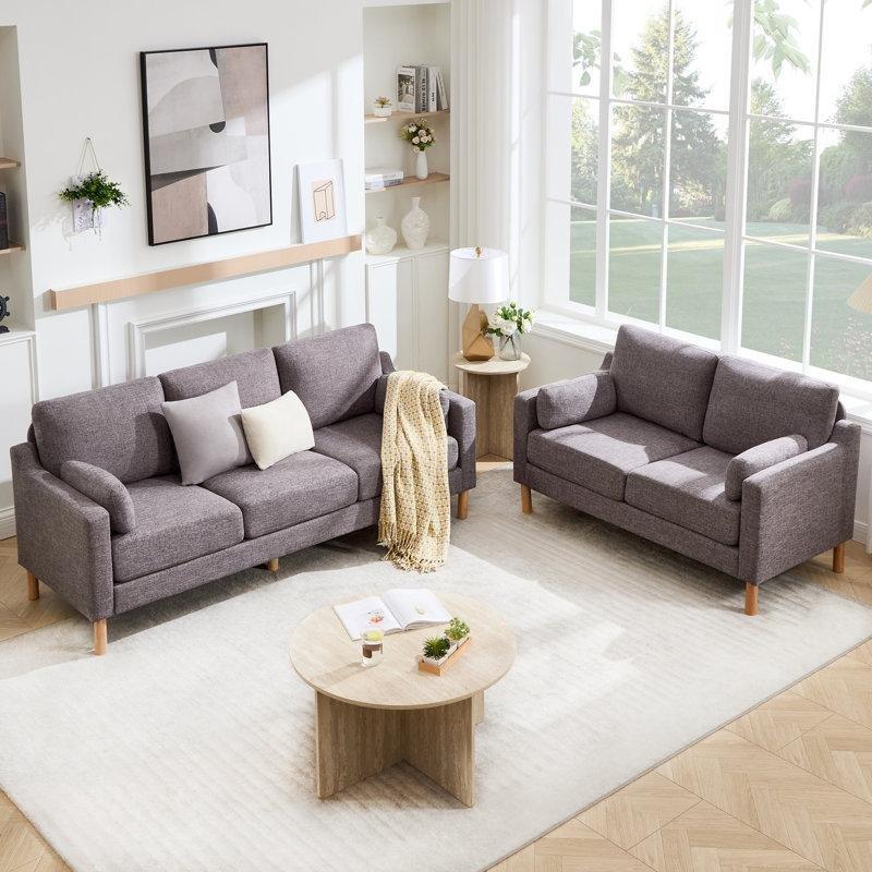 Gri Masif Çam Ağacı İskeletli Dokulu Kumaş 2 Parça Koltuk Takımı – 192028