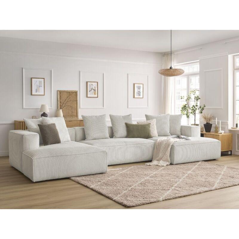 • Modern ve panoramik tasarımıyla bu köşe koltuk takımı, geniş salonların merkezinde yer almak için tasarlanmıştır.