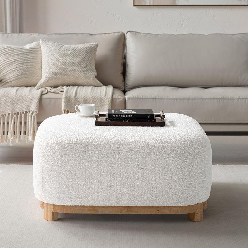 Bu puflu orta sehpa, tasarım ve işlevselliği bir araya getiren pratik bir mobilyadır. 91 x 91 cm boyutlarındaki kare şekli, oturma odaları ve aile odalarında rahatça yer bulur. Masif ahşap ve endüstriyel ahşaptan el yapımı şekilde üretilen ürün, sağlam bir yapıya ve uzun ömürlü kullanıma sahiptir.