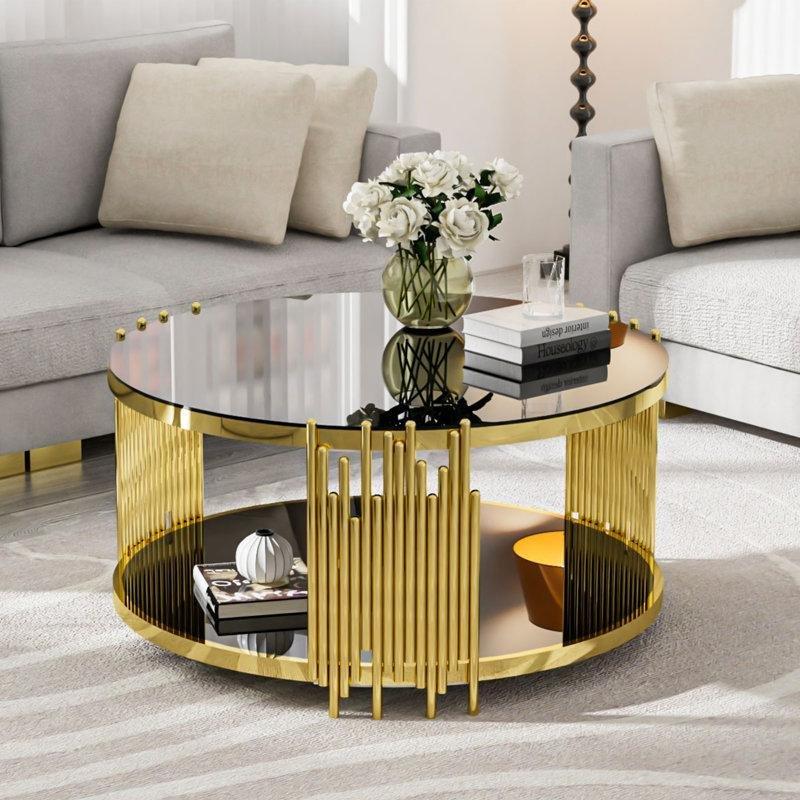 Ayaklar düz gold metal malzemeyle yapılmıştır ve kararlı bir zemin üzerine oturan tabladır. Gold rengi metal ayakları, güncel dekorasyon trendine uygun olarak tasarlanmıştır. Sehpalar birlikte kullanılabileceği gibi ayrı ayrı da işlev görebilir. Modüler yapısı sayesinde farklı iç tasarım stillerine uyum sağlar.
