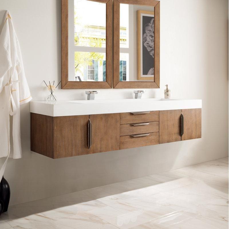 • Geniş polimer mermer tezgah üzerinde, yekpare tasarıma sahip iki adet dahili lavabo yer alır ve bu sayede banyonuzda aynı anda iki kişinin hazırlanmasını kolaylaştırır.
