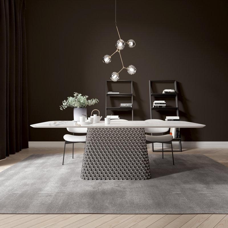 Güçlü üçgen ayak yapısı sayesinde masanız hiç titremeden sabit kalır. Yuvarlak ve yay şeklinde kenarlar, hem estetik bir tasarım hem de çarpma riskine karşı güvenlik sağlar. Bu kenarlar pürüzsüz ve kesintisiz bir şekilde işlenmiştir.