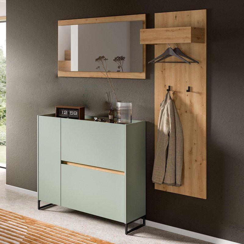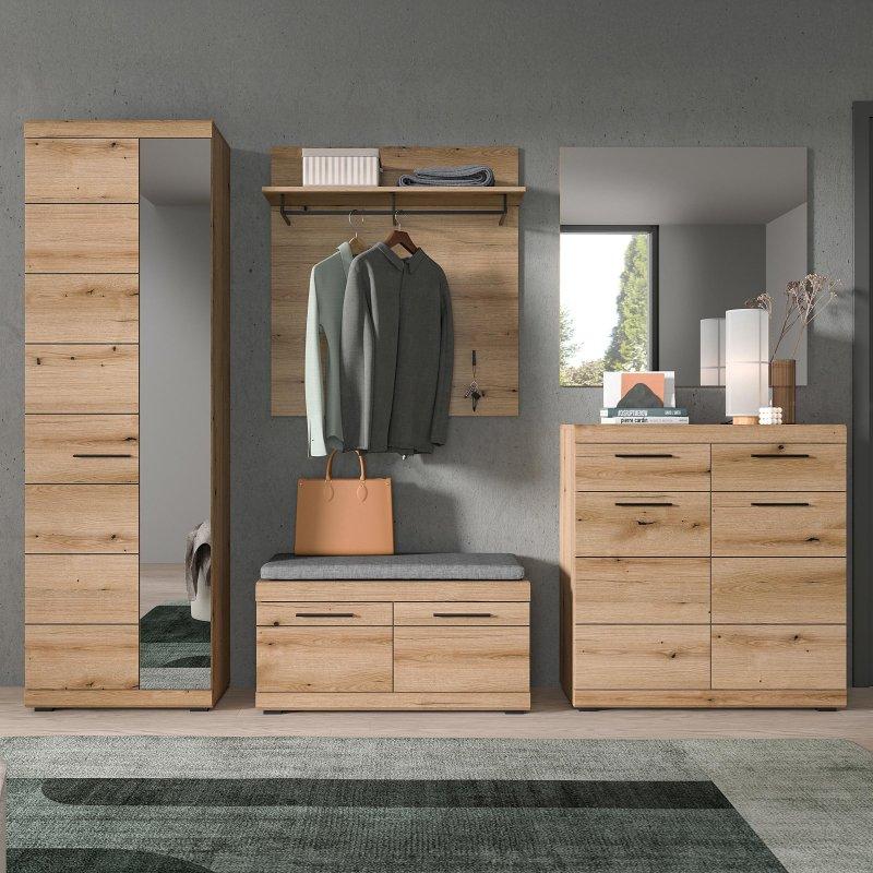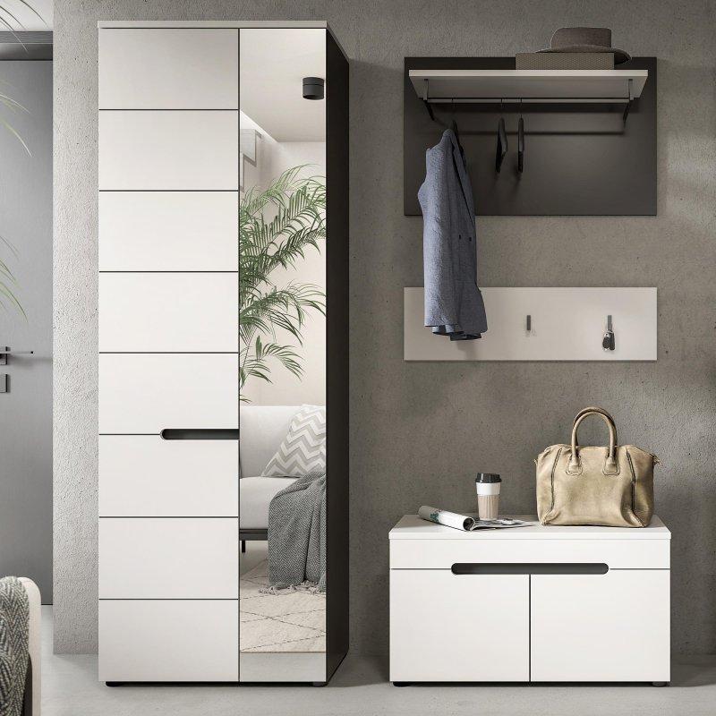 • Station serisinin bu üç parçalı portmanto seti, bir dolap, bir ayna ve bir komodinden oluşarak antreniz için bütüncül bir çözüm sunar.