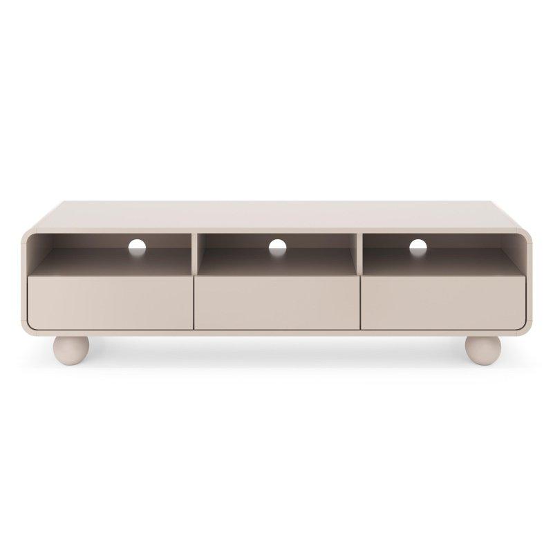 Ünitenin en belirgin özelliği yuvarlak köşeleridir. Keskin hatlar yerine yumuşak geçişler kullanılmıştır. Bu tasarım hem modern hem de sıcak bir ortam yaratır. Ünitenin altındaki yuvarlak ayaklar dikkat çekici bir detay oluşturur ve standart tasarımlardan farklıdır.