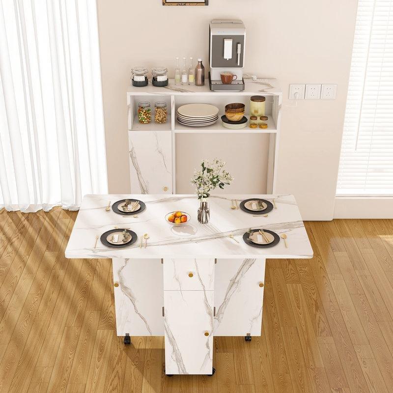 Masanın üst yüzeyi aşınmaya dayanıklı ve ısıya dirençlidir. Kurulumu oldukça basittir ve detaylı talimatlar içerir. Masanın altında iki tekerlekli ayak vardır, bu sayede masayı kolayca hareket ettirebilirsiniz. Açılır kapanır bölümleri gizli kilitlerle sabitlenir ve kullanım sırasında masanın sallanmadığından emin olur.