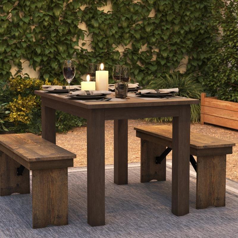 Masa ve sandalyeler kauçuk ağacından yapılmıştır. Sandalyelerin kumaş kısmı polyester dolgulu keten kumaştır. Masa tabanı kare sütun şeklinde tasarlanmıştır ve stabilite sağlayan ayarlı niveleme sistemi vardır. Ahşap fırınla kurutulmuştur ve oldukça dayanıklıdır.