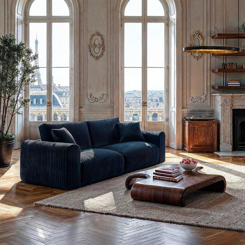 • Dokulu kadife etkili lacivert kumaşı, hem göze hem de dokunuşa hitap eden bir yüzey sunarak sakinleştirici ve huzurlu bir atmosfer yaratmanıza yardımcı olur.