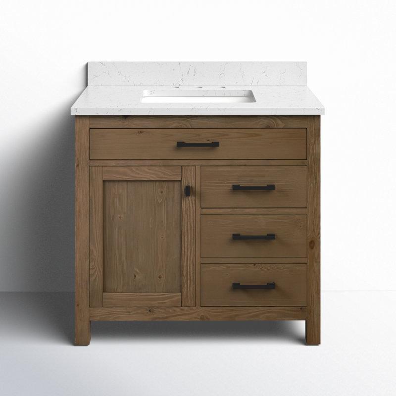 • Gövdesi masif ve endüstriyel ahşap malzemelerden üretilmiş olup, üzerinde lekelere ve çizilmelere karşı dayanıklı, beyaz renkte kompoze taş tezgah yer alır.