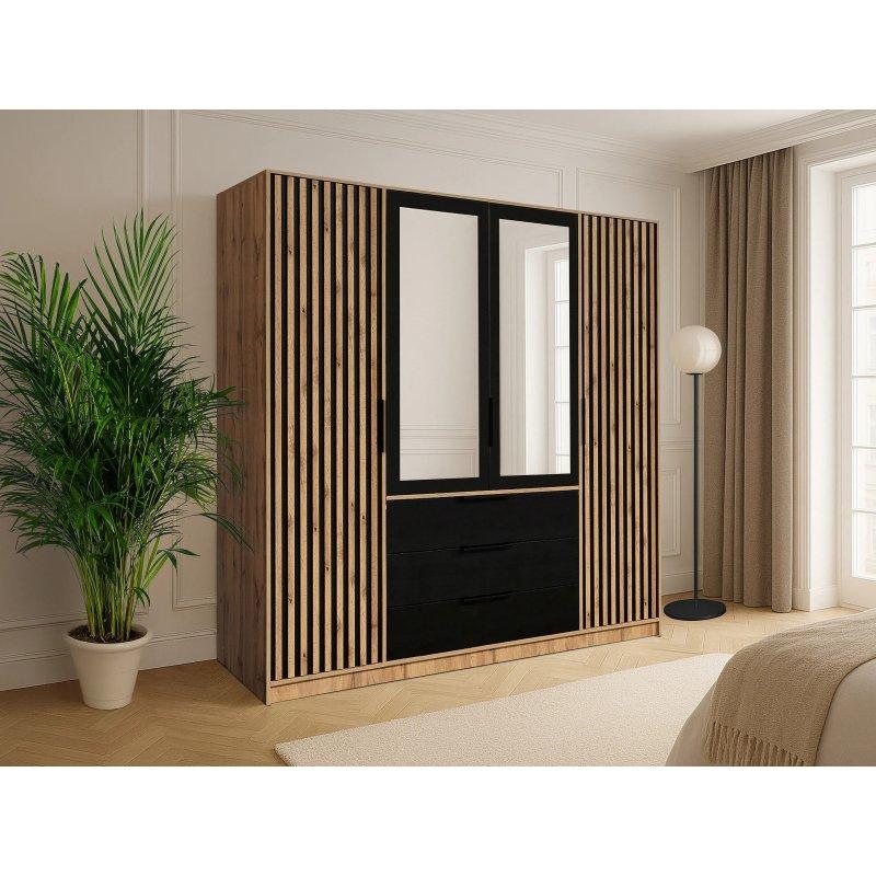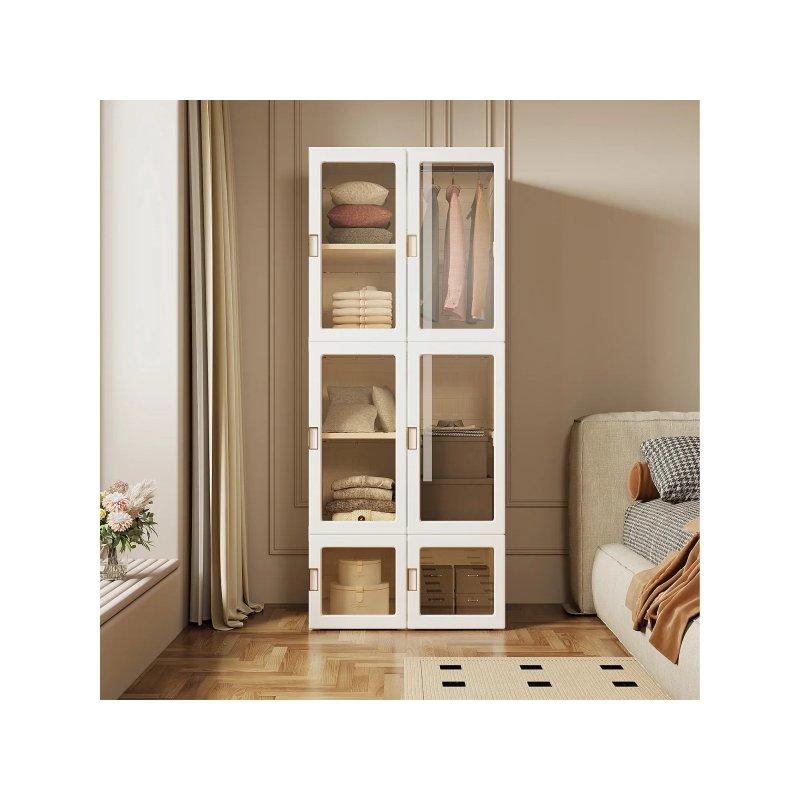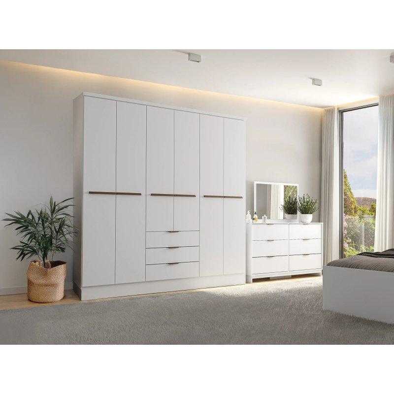 Gardrop, 6 adet açılır kapıya sahiptir ve iç kısmında 3 adet sabitlenebilir giysi askısı bulunur. Toplam 6 adet ayarlanabilir raf ile içeriyi istediğiniz şekilde organize edebilirsiniz. Her bir raf 20 kilogramlık yüke dayanıklıdır. Kapıların açılıp kapanması yumuşak ve sessiz bir şekilde gerçekleşir çünkü menteşeler özel bir dampingli sistem ile donatılmıştır.