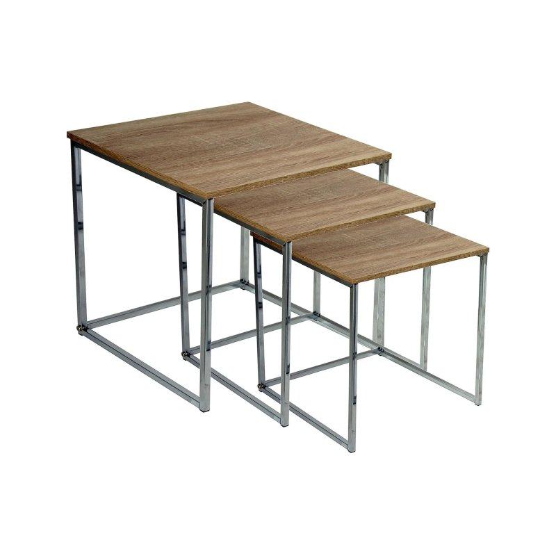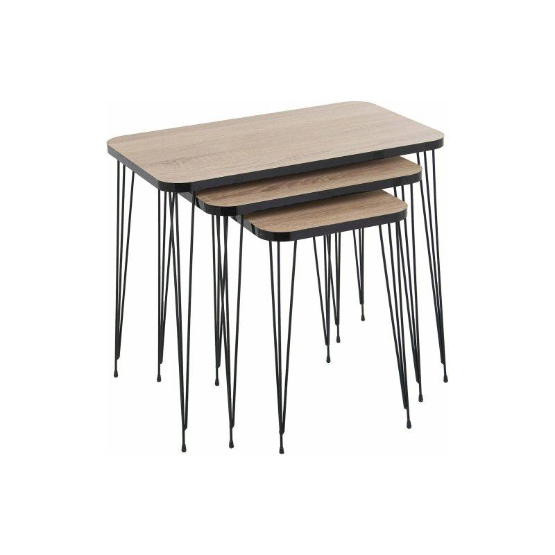 Sehpalar siyah metal ayaklara sahiptir. Ahşap tablalar ile metal ayaklar birlikte modern bir görünüm oluşturur. En büyük sehpa 60×60 cm taban ölçüsünde ve 45 cm yüksekliğindedir. Orta boy sehpa 50×50 cm taban ölçüsünde ve 40 cm yüksekliğindedir. En küçük sehpa ise 40×40 cm taban ölçüsünde ve 34 cm yüksekliğindedir.