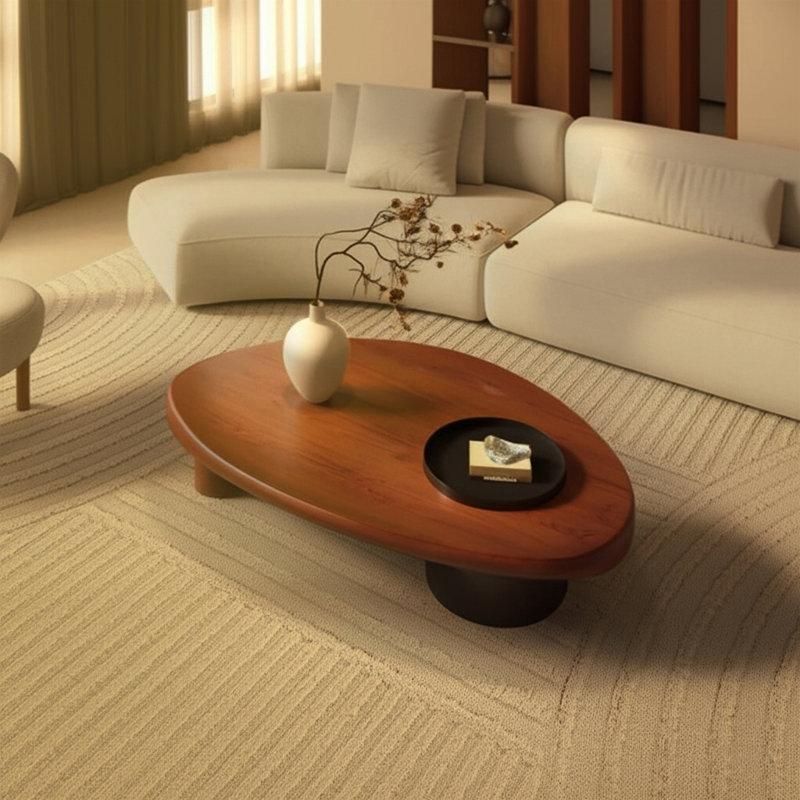 Bu masif meşe ahşaplı oval orta sehpa, kahverengi rengiyle sıcak ve doğal bir atmosfer yaratır. Rustik ve modern tarzı bir araya getiren tasarımı, bohem dekorasyonun vazgeçilmez parçası haline gelir. Pürüzsüz yüzeyli masif ahşap tabla, doğal ahşap damarlarının görünür olduğu samimi bir dokuya sahiptir.