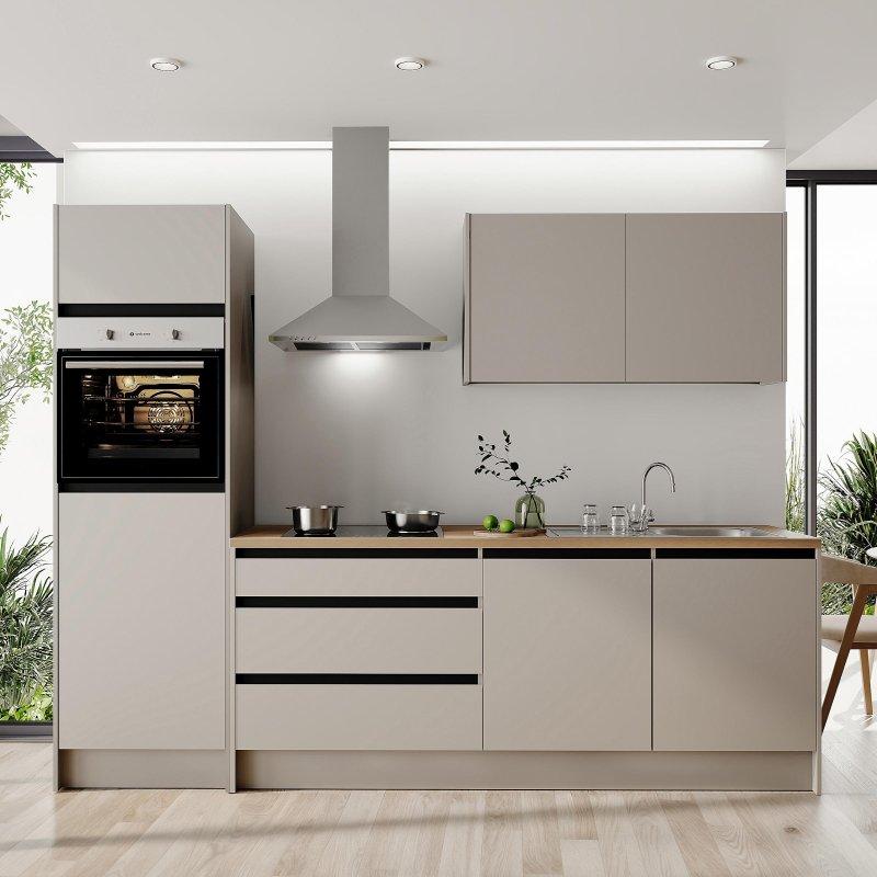 • Nela komple mutfak seti, mat gri rengi ve 7 parçalı modüler yapısıyla modern mekanlar için tasarlanmıştır.
