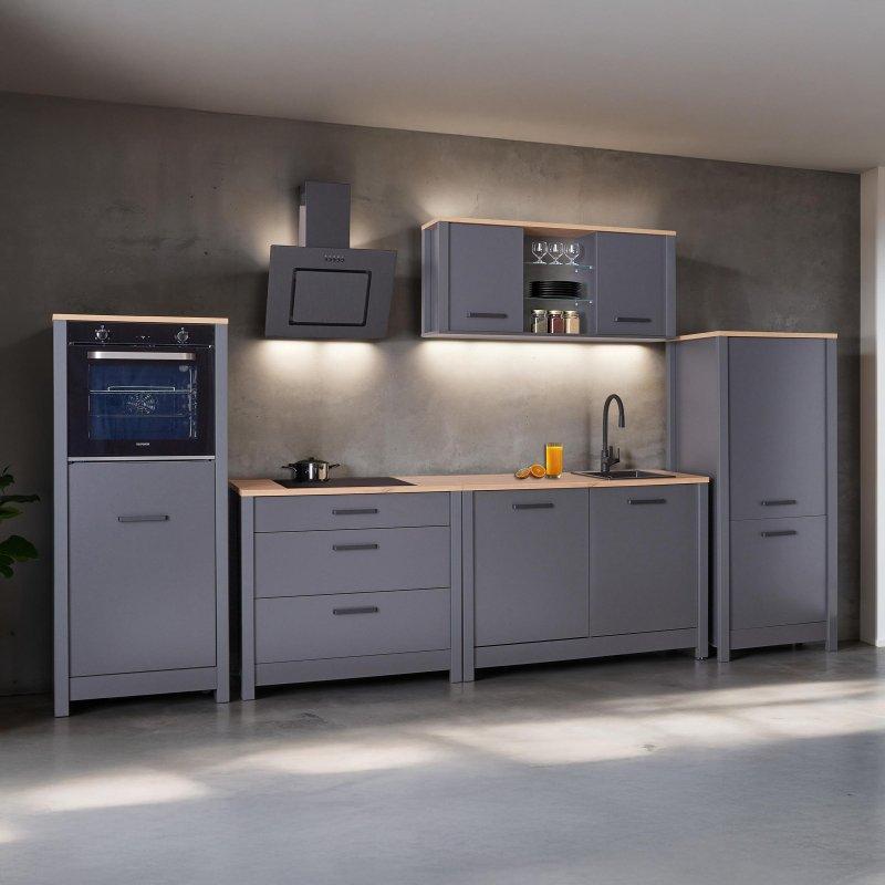 • Nela mutfak seti, mat gri kapakları ve modern tasarımıyla mutfağınıza çağdaş bir estetik kazandırır.