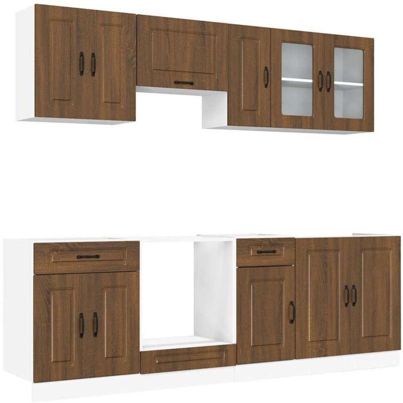 • Toplam 7 modülden oluşan bu set, 240 cm üst dolap ve 180 cm alt dolap uzunluğuyla fonksiyonel bir yerleşim düzeni oluşturur.