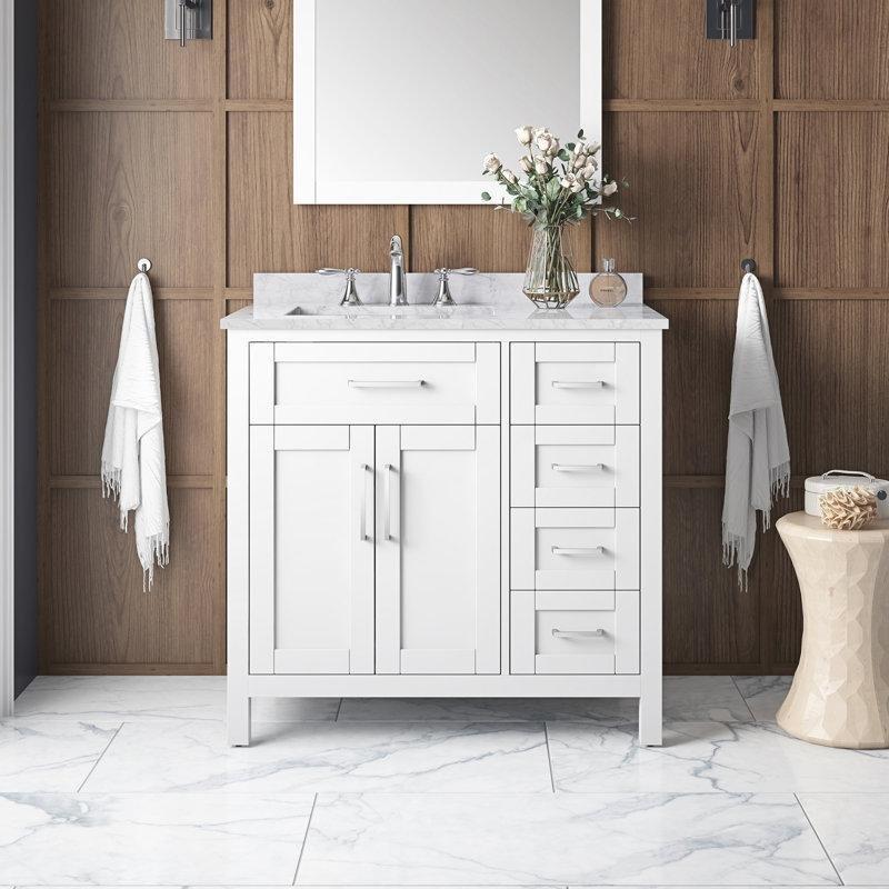 • Beyaz renkteki endüstriyel mermer tezgah, su damlacıklarını ve lekeleri etkili bir şekilde iterek kolay temizlik imkanı sunar ve tezgah altı seramik lavabo ile bütünleşik bir tasarım oluşturur.