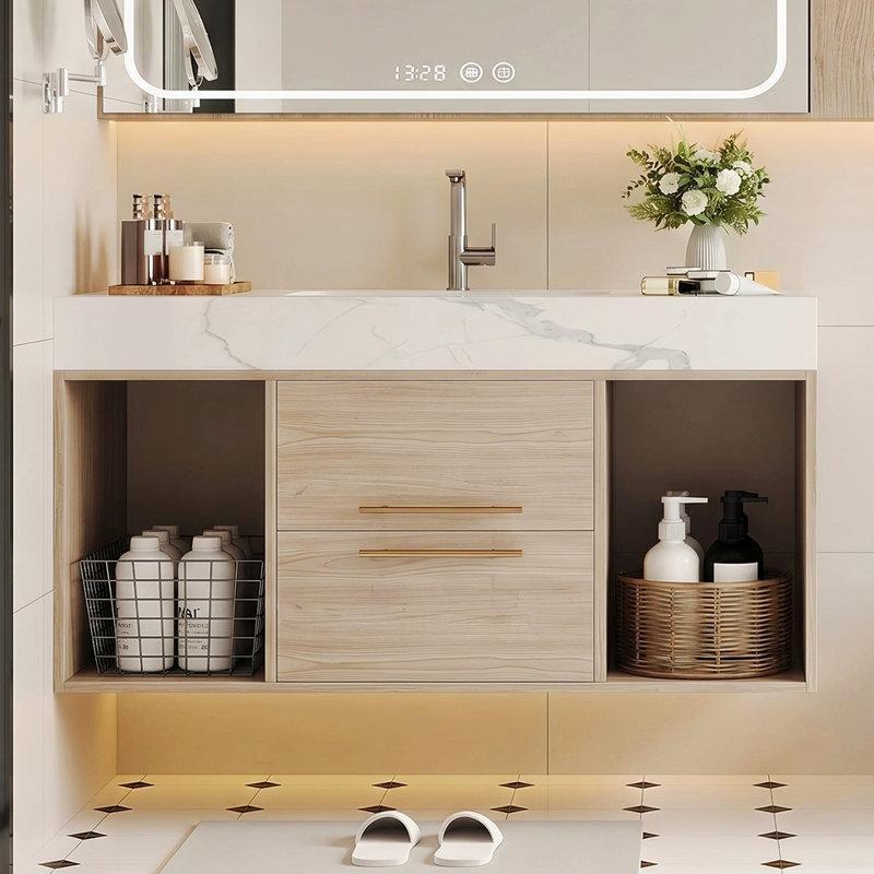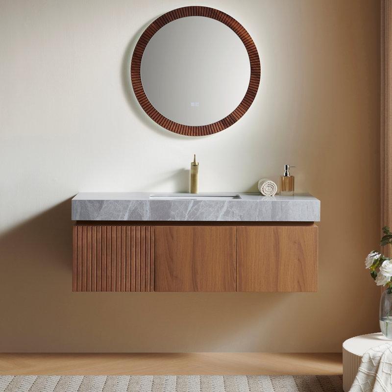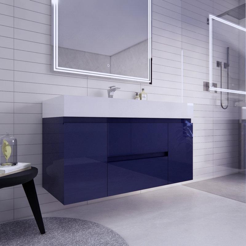 • Bu 122 cm’lik duvara monte lavabo dolabı ile banyonuza modern bir zarafet ve işlevsellik katın.