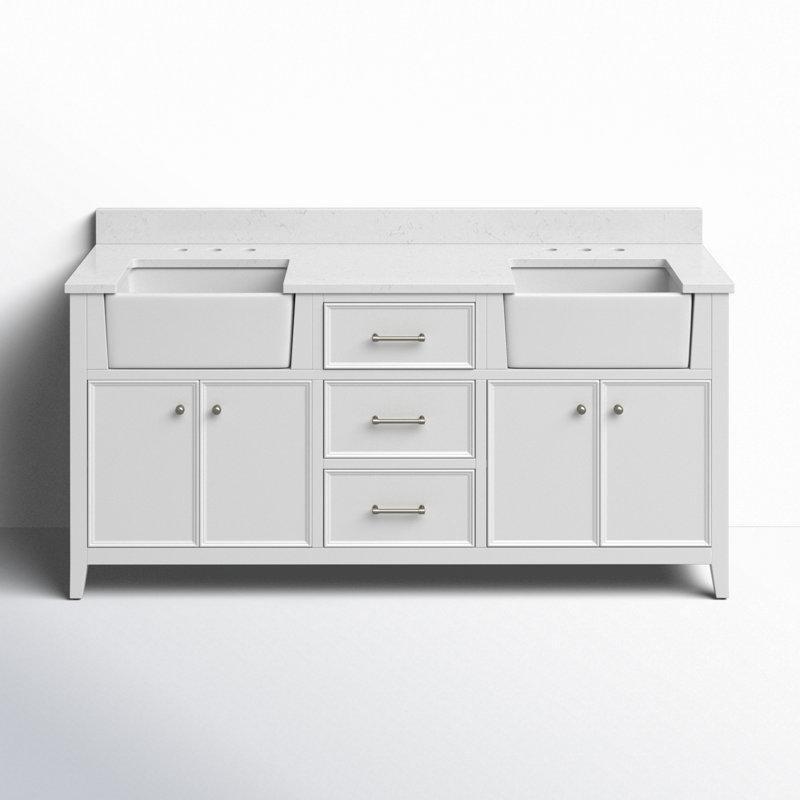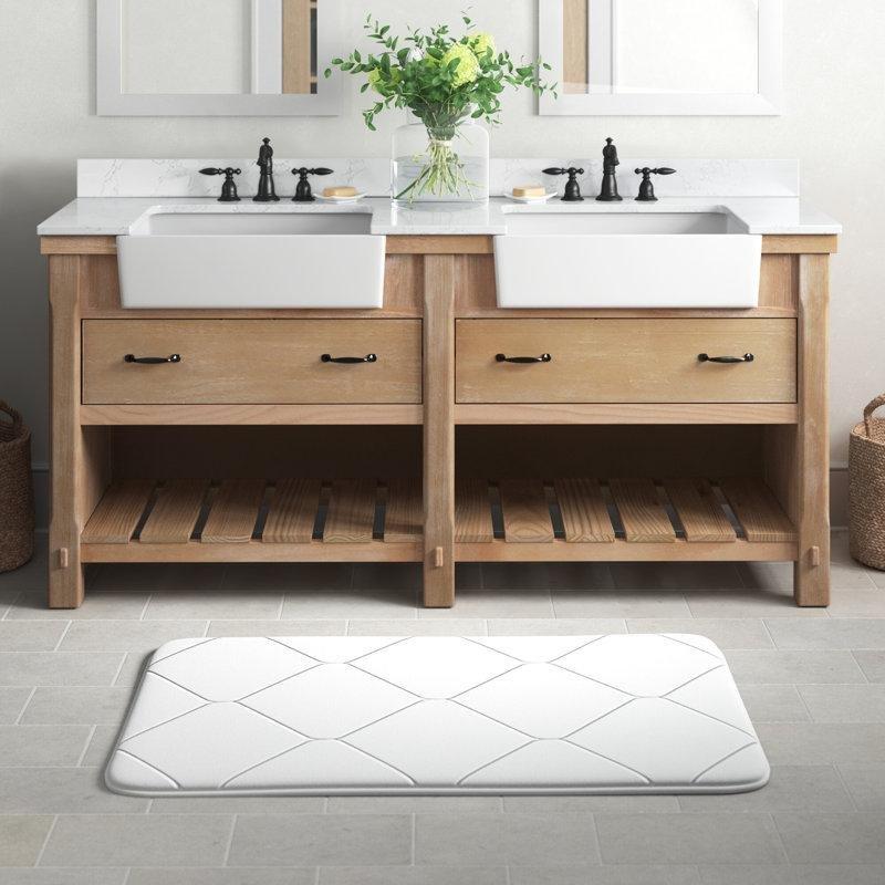 • Dikdörtgen formdaki iki adet beyaz seramik tezgah altı lavabo, sete dahildir ve banyonuza bütüncül bir görünüm kazandırır.