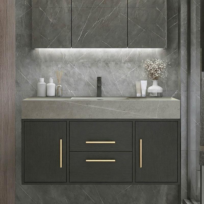• Modern tasarımı klasik detaylarla birleştiren bu banyo dolabı, masif ve endüstriyel ahşap malzemelerin birleşiminden üretilmiştir.