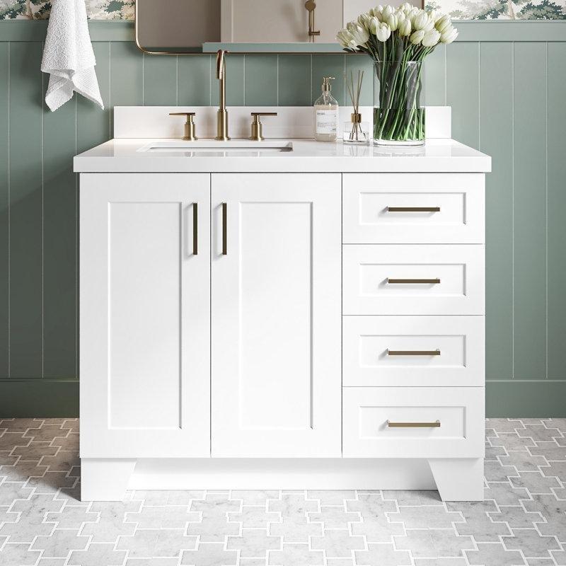 • Geniş depolama alanı sunan dolap, kırlangıç kuyruğu tekniğiyle birleştirilmiş çekmecelere ve ek bir rafa sahiptir. Toplamda beş adet işlevsel çekmece, banyo eşyalarınızı düzenli bir şekilde saklamanıza yardımcı olur.
