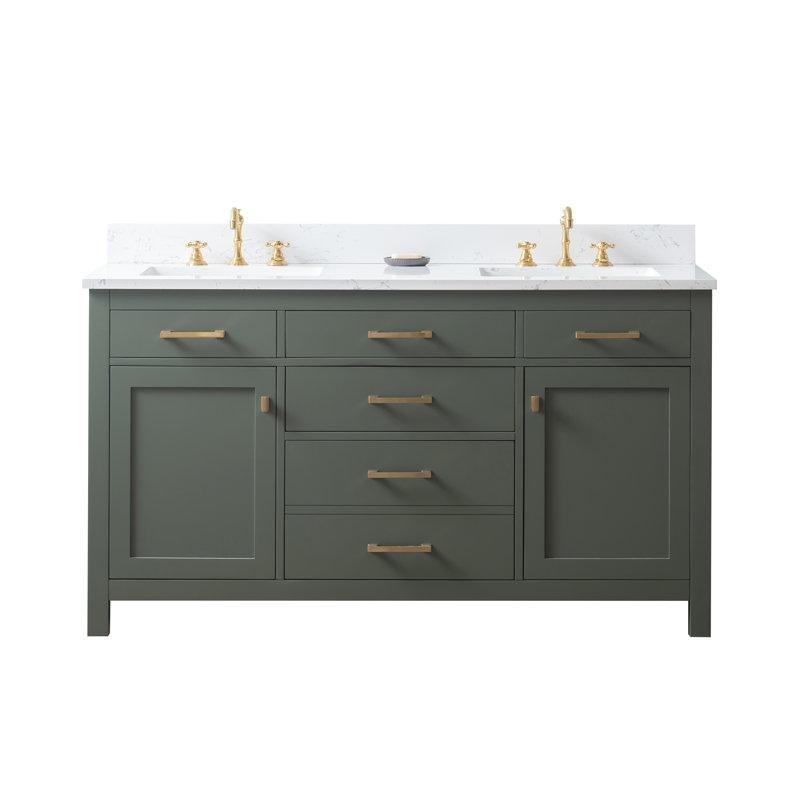 • Metal menteşeli çift kapak ve çekmeceler, yavaş kapanma mekanizması sayesinde sessiz ve yumuşak bir kullanım deneyimi sunar. Mavi renkli gövdeyle uyumlu gold metal kulplar, tasarıma zarif bir detay ekler.