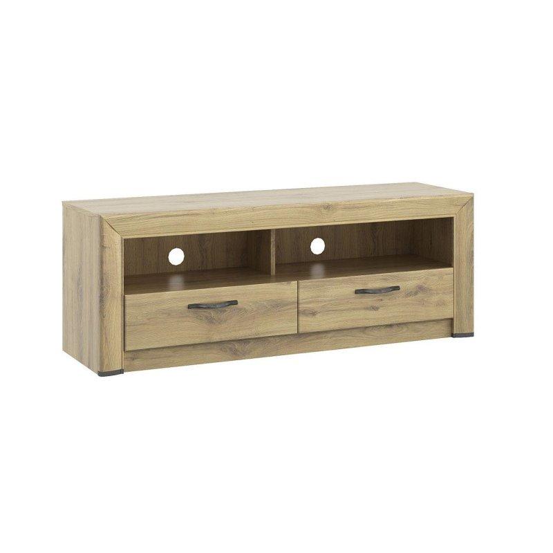 Bu TV ünitesi, açık raflı ve kapalı depolama alanlarını bir arada sunarak oturma odalarında işlevsellik ve tasarımı harmanlayan bir mobilya parçasıdır.