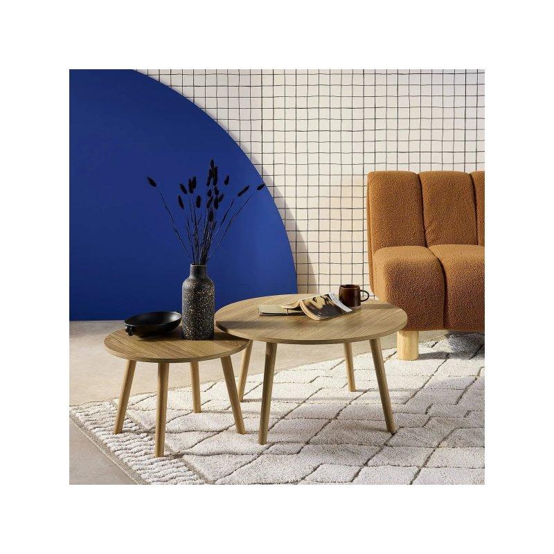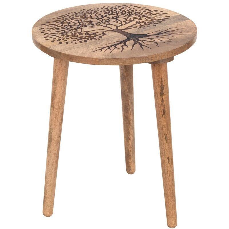 – Naturel mango ahşaptan üretilmiş yuvarlak tasarımlı bir zigon sehpa