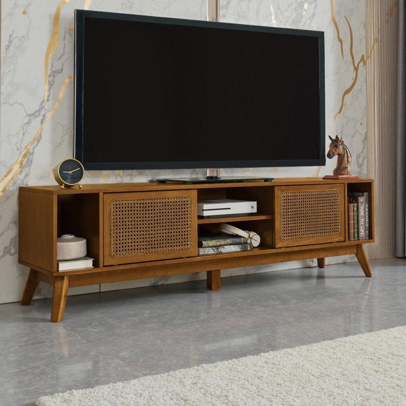 Bu bohem tv ünitesi, orta yüzyıl tasarımının temiz hatlarını doğal dokularla birleştirerek yaşam alanlarınıza sıcaklık katıyor. 172 cm genişliğindeki geniş yüzeyi, 75 inç’e kadar televizyonları rahatça barındırabilir. Ceviz rengi ahşap gövdesi ve açık renkli hasır kapıları, modern çiftlik tarzı veya kıyı temalı iç tasarımlarla mükemmel uyum sağlar.