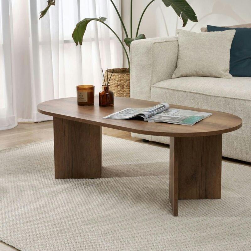 Oval Ahşap Orta Sehpa Ceviz Rengi 90×60 cm – 103493
