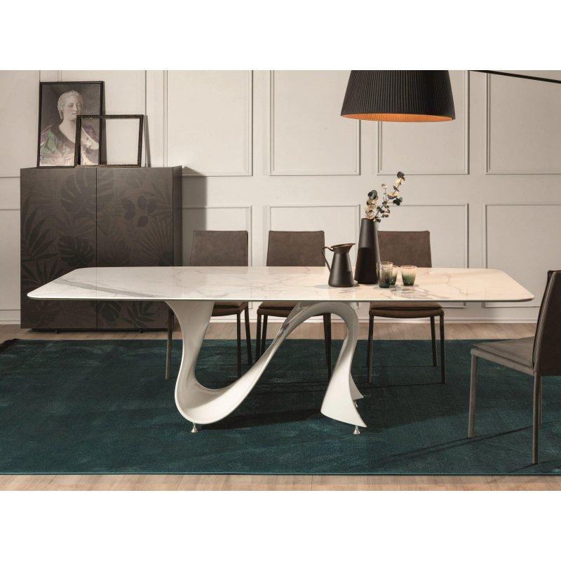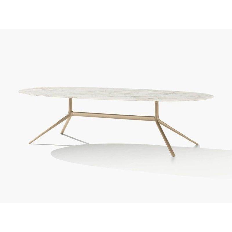 Bu oval mermer masa, beyaz Carrara mermeri ile üretilmiştir. Üst yüzey elips formunda tasarlanmıştır ve doğal mermer damarları ile dikkat çeker. Beyaz tonlarda bir renk paletine sahip olan masa, yemek odalarında şık bir görünüm oluşturur.