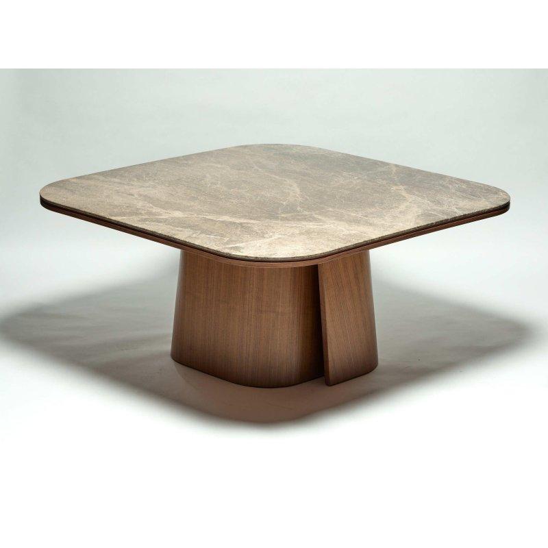 Ahşap ayak, patine bronz lake ile kaplanmış ve bu kaplama dayanıklılığı artırıyor. Yoğun açılı yapısı, masaya dinamik bir karakter kazandırıyor. Ayağın yıldız formu, her açıdan farklı bir görüntü sunuyor.
