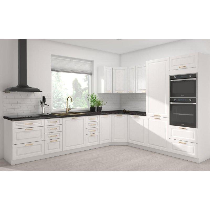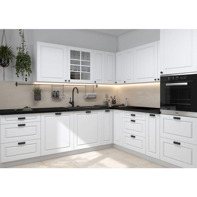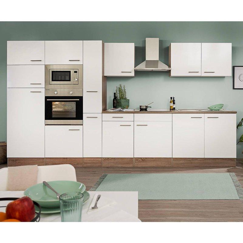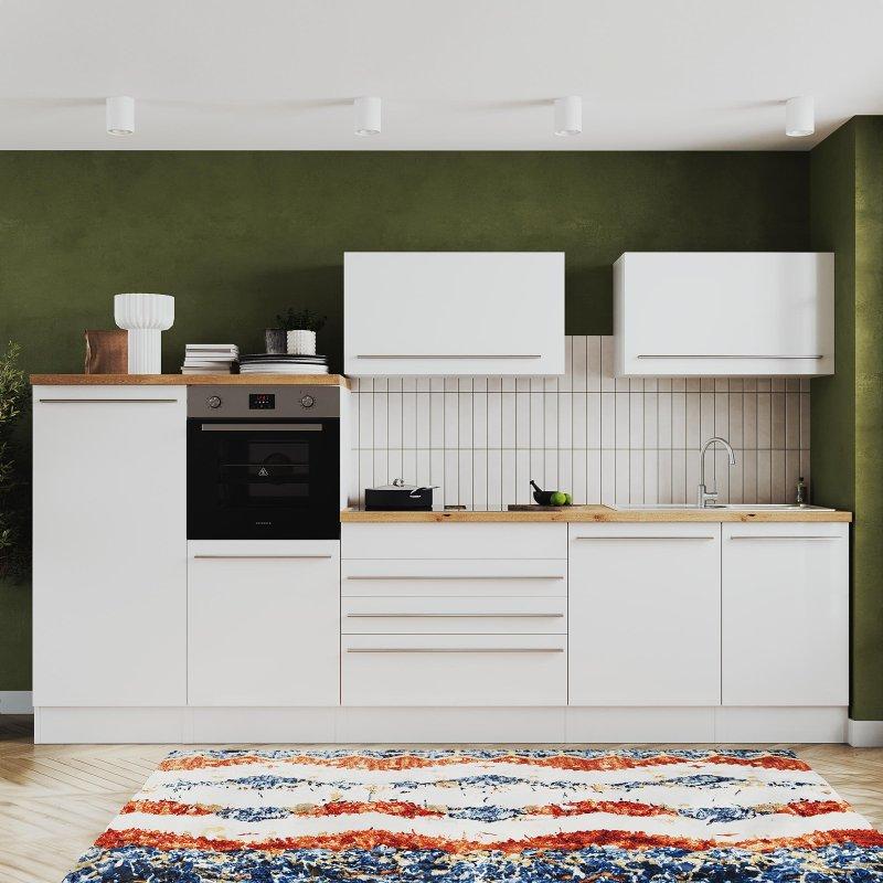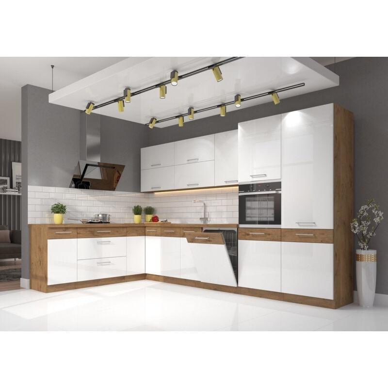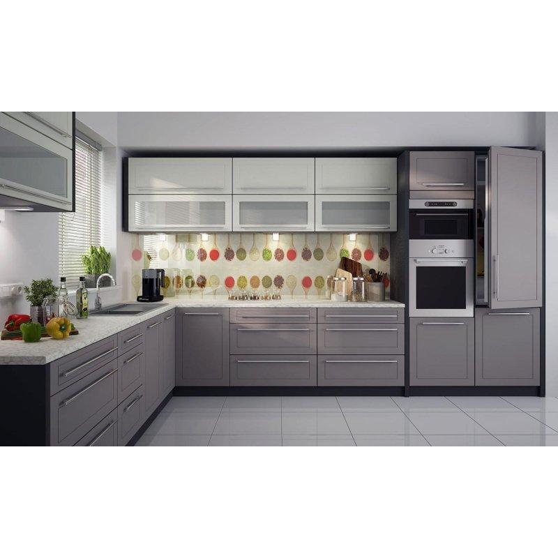 Parlak Beyaz ve Mat Gri MDF Yavaş Kapanır Metal Kulplu Mutfak Modeli – 305 cm – 185147