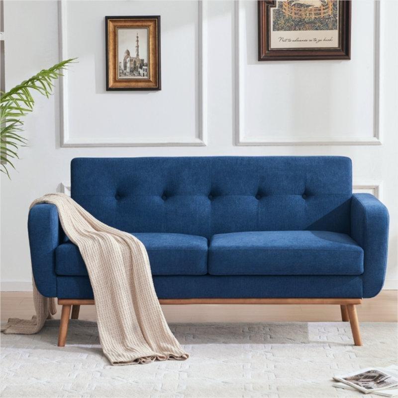 Pembe Polyester Kumaş Gökkuşağı Tasarımlı Masif Ahşap Ayaklı İkili Koltuk – 124 cm – 197107