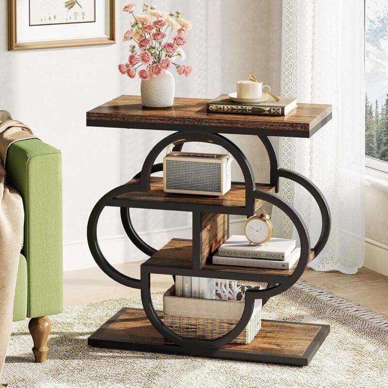 • Rustik kahverengi raflar ve siyah metal iskelet, endüstriyel çizgide kompakt bir form verir.