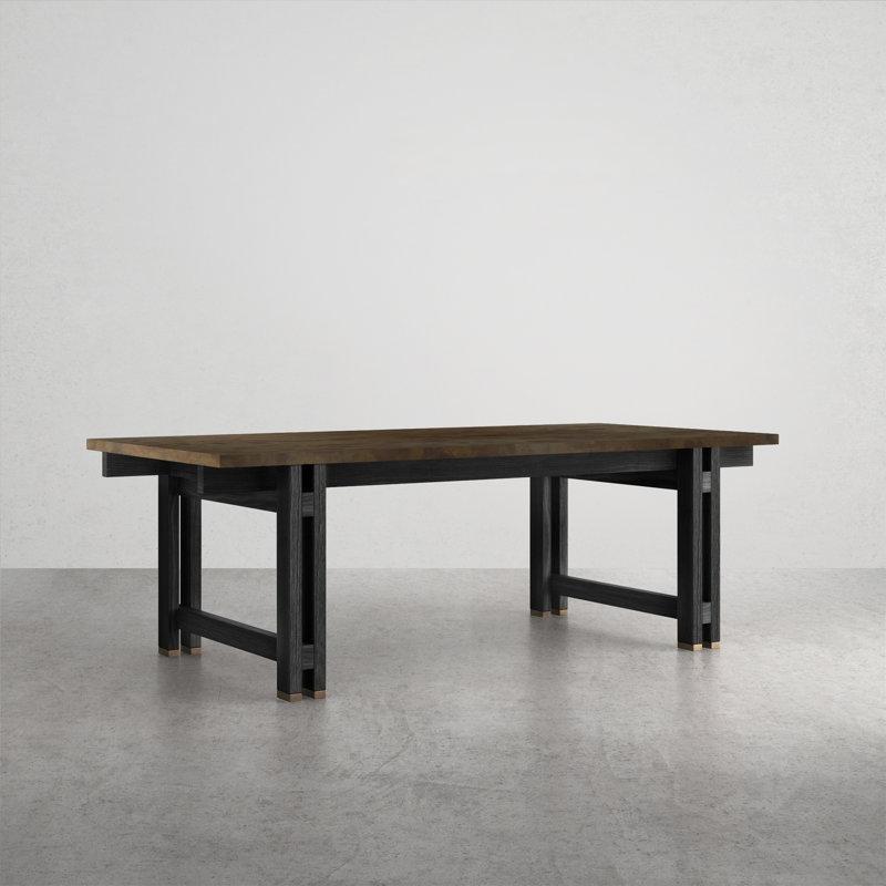 Masanın tabanı, güçlü metal şeritlerle desteklenen ahşap trestle tasarımıyla yapılmıştır. Eğimli bacaklar, masaya zarafet katarken aynı zamanda yüksek stabilite sağlıyor. Scratch direnci sayesinde günlük aşınmalara karşı dirençlidir.