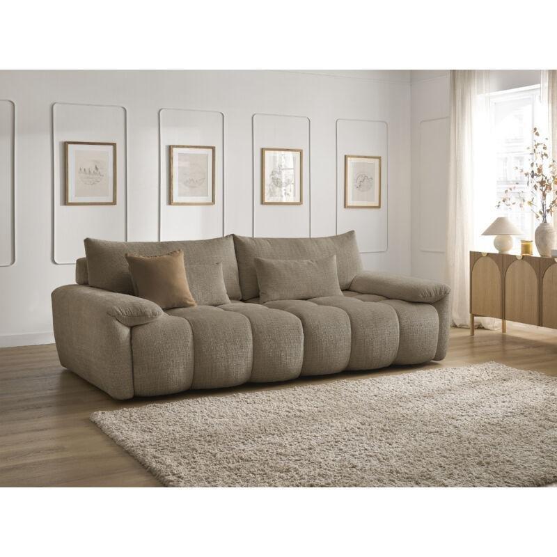 • Modern tasarımı ve sarı kırçıllı kumaşıyla yaşam alanınıza canlılık katan bu üç kişilik koltuk, küçük bir puf ile birlikte gelir.