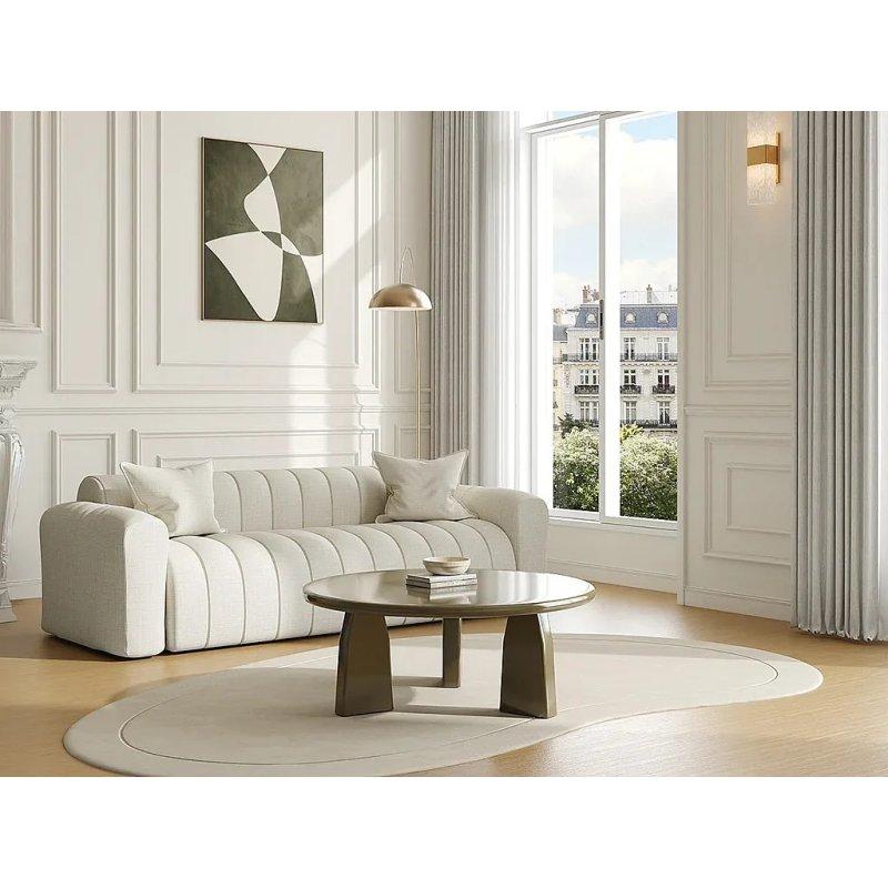 Seramik üstü ve metal ayaklı bu orta sehpa, siyah mermer tasarımı ile odanın merkezinde dikkat çeker. Üst yüzeyde ince çizgiler yer alır ve bu detaylar sehpaya derinlik katar. Metal ayaklar çapraz biçimde tasarlanmıştır ve siyah renktedir.