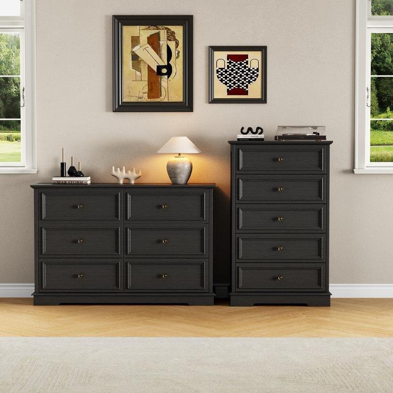 Siyah Ahşap 2’li Set 5 Çekmeceli Şifonyer – 70×112 cm – 122947